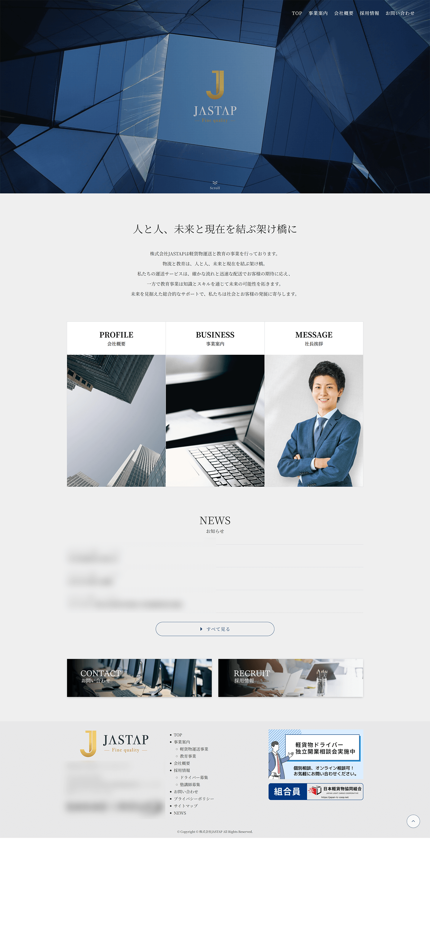 【実績】運送/教育事業法人 2025 2/24 HP 1カラム Wordpress シンプル ビジネス ブルー PC版スマホ版 HP 1カラム Wordpress シンプル ビジネス ブルー 【実績】農業生産法人ホームページ 【実績】自動車販売/整備法人 関連記事 【実績】高齢者施設配食事業 【実績】便利屋事業 【実績】自動車関連法人 【実績】レンタル電動モビリティ 【実績】自動車販売/整備法人 【実績】農業生産法人ホームページ